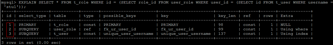 查询id 为3的数据 ;