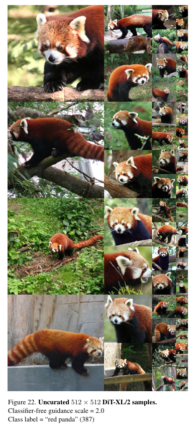 | 512×512分辨率的DiT-XL/2模型未筛选样本,无分类器引导尺度 = 2.0,类别标签 = “小熊猫”(387) |