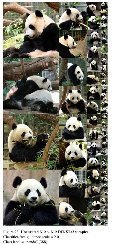 512×512分辨率的DiT-XL/2模型未筛选样本,无分类器引导尺度 = 2.0,类别标签 = “熊猫”(388) |