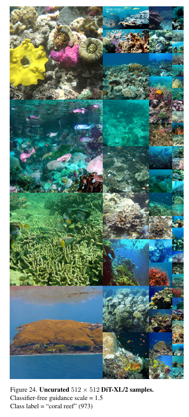 | 512×512分辨率的DiT-XL/2模型未筛选样本,无分类器引导尺度 = 1.5,类别标签 = “珊瑚礁”(973) |