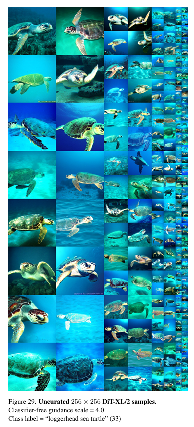 256×256分辨率的DiT-XL/2模型未筛选样本,无分类器引导尺度 = 4.0,类别标签 = “蠵龟”(33) |